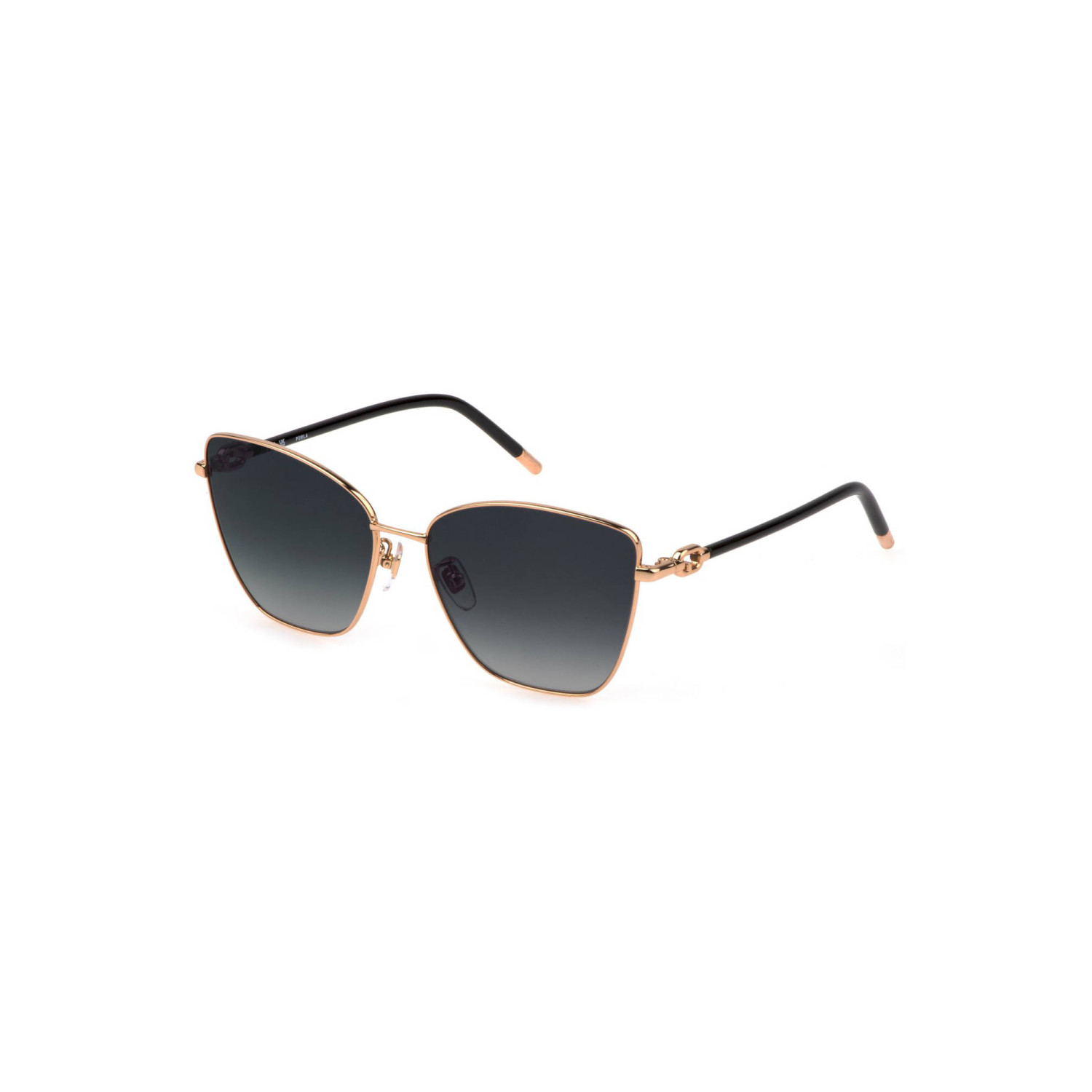 occhiale da sole, montatura in metallo, lente squadrata, lente fume', dettagli a contrasto, larghezza lente 58 mm, larghezza del ponte 16 mm, lunghezza asta 135 mm, logo