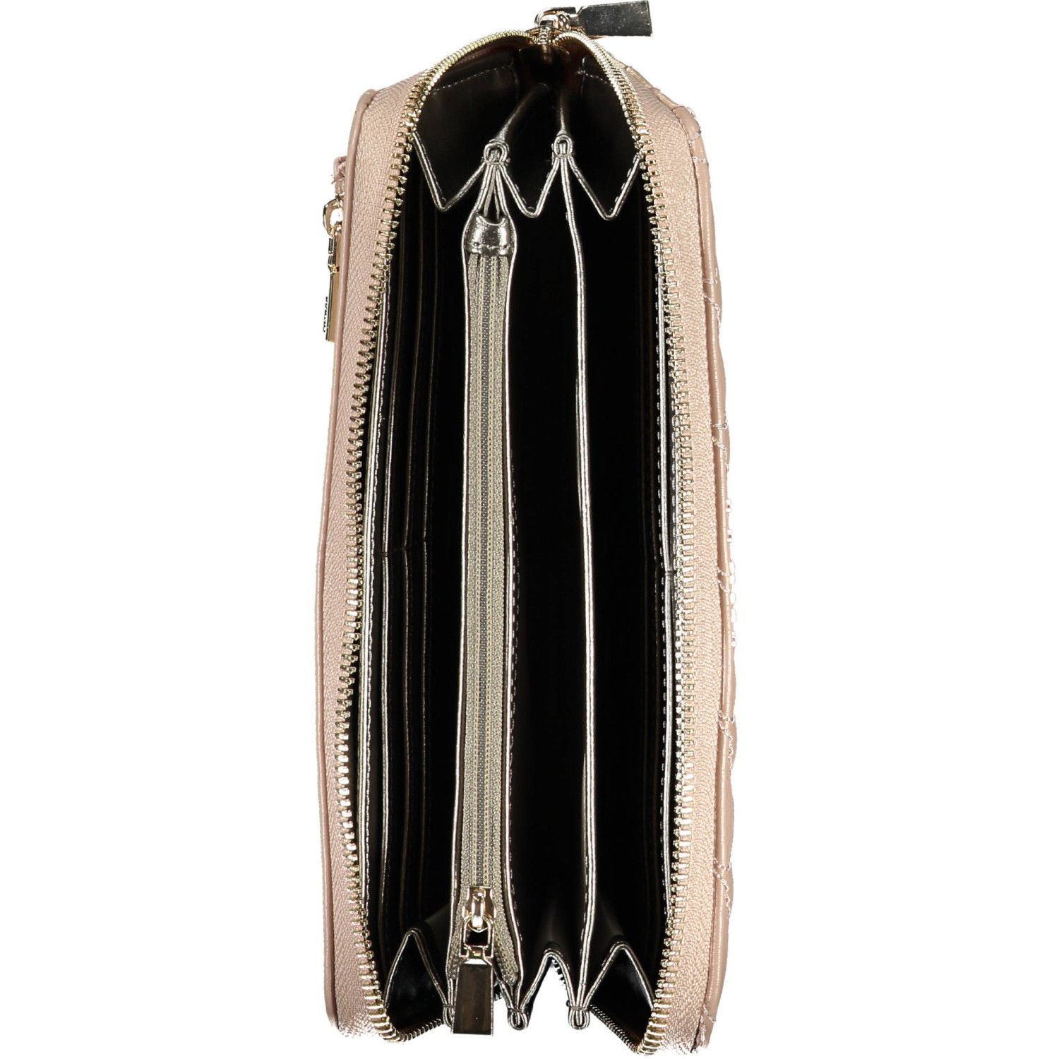 portafoglio 5 scomparti, portamonete, doppi spazi formato da card, 1 tasca esterna, dettagli a contrasto, chiusura con zip, tiralungo removibile, logo