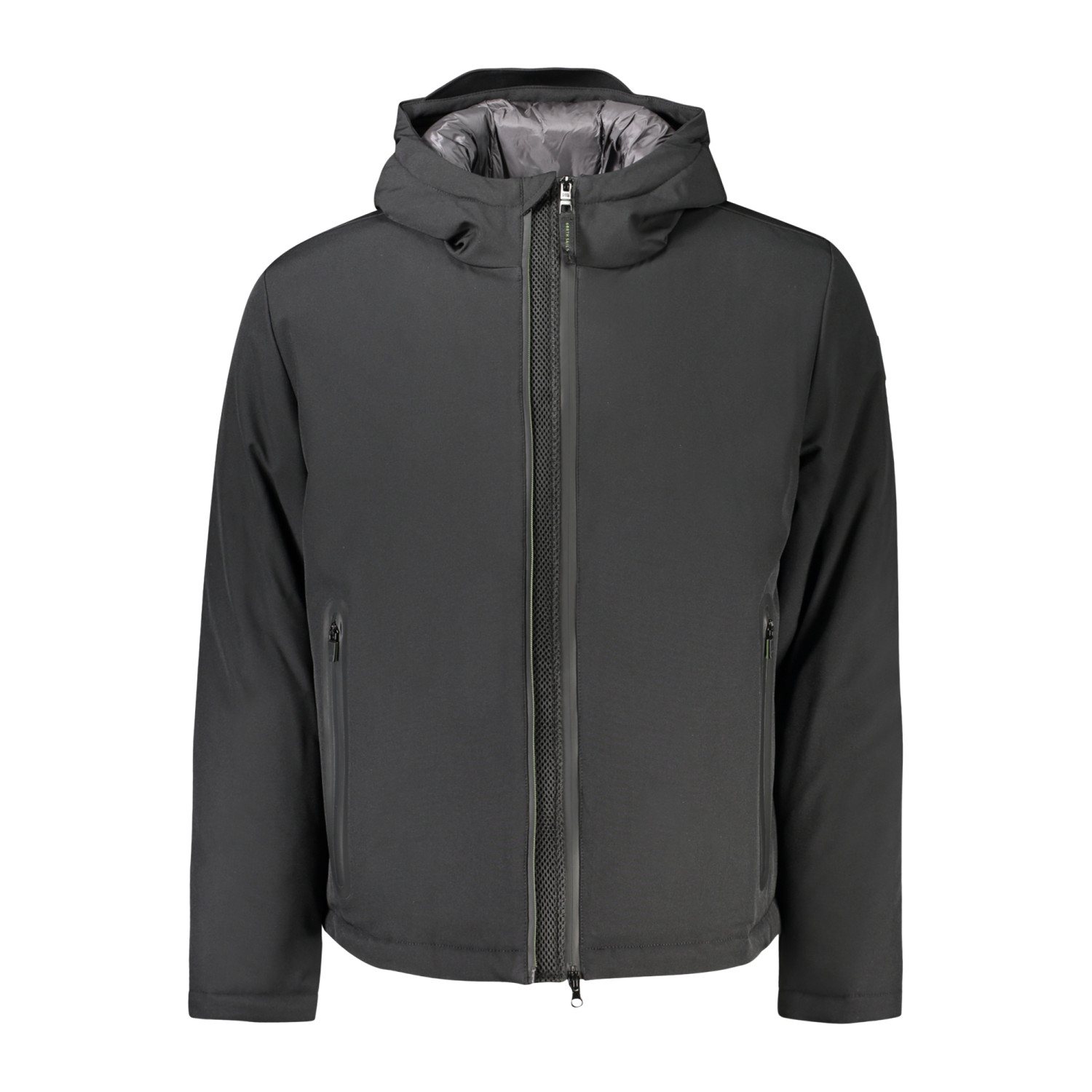 GIUBBOTTO MANICHE LUNGHE CON CAPPUCCIO, 2 TASCHE ESTERNE, 1 TASCA INTERNA, ZIP, APPLICAZIONE, STAMPA, LOGO, RECYCLED PLASTIC BOTTLES