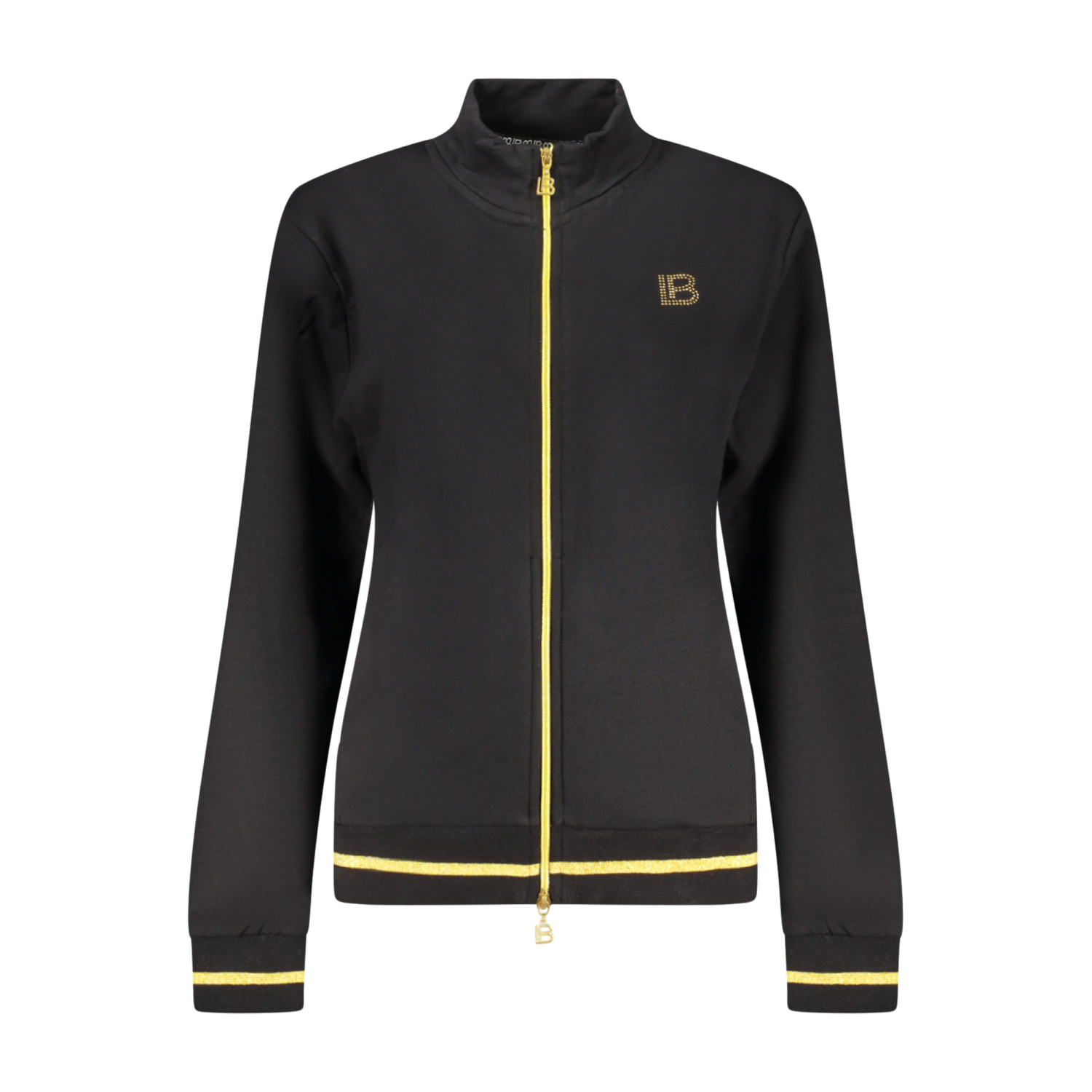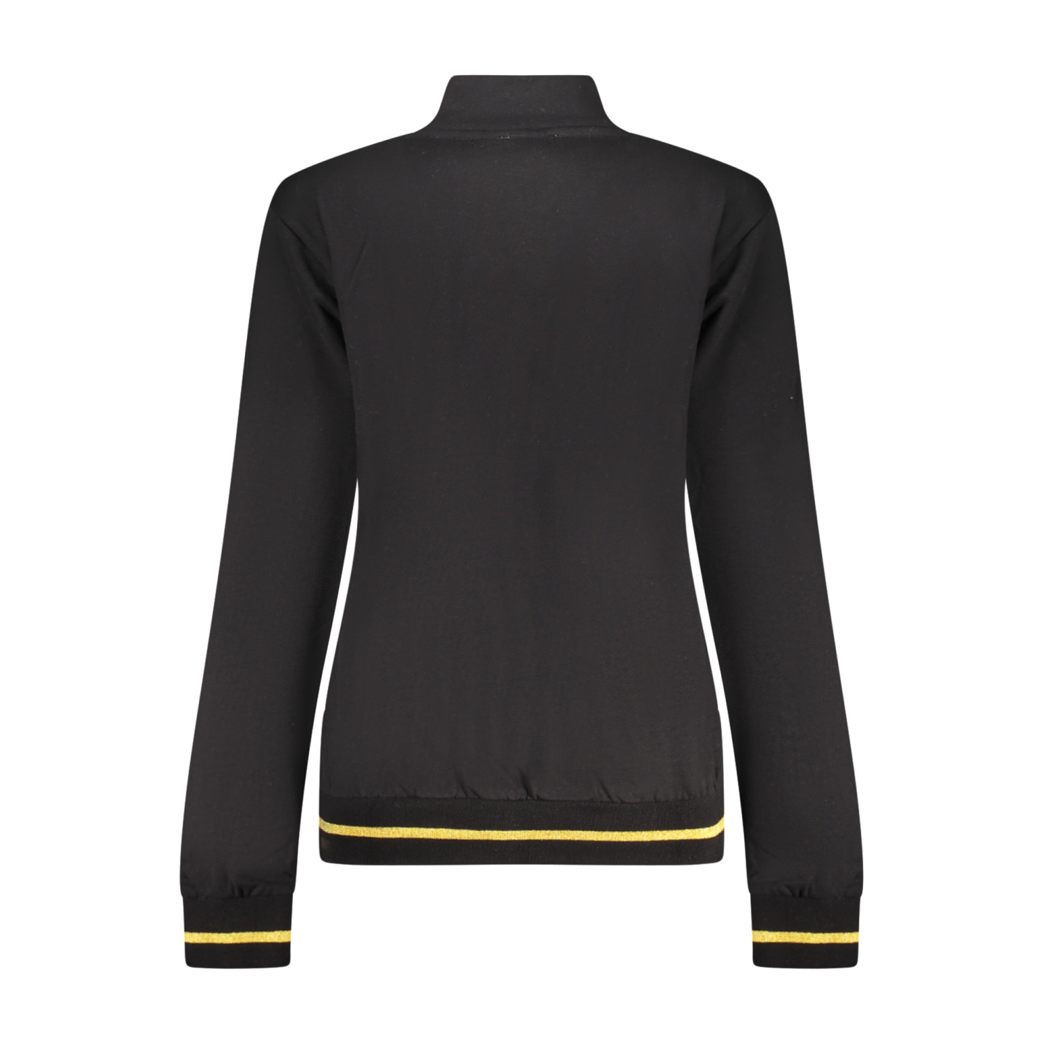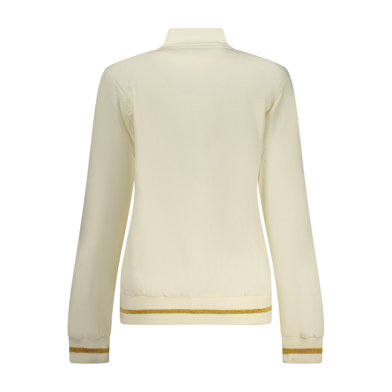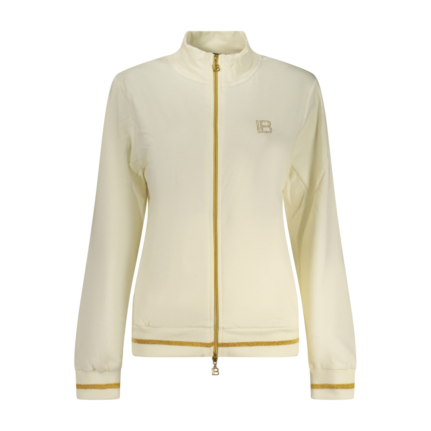 TUTA SPORTIVA FELPATA, FELPA MANICHE LUNGHE IN BIANCO, 2 TASCHE, FULL ZIP, PANTALONE NERO, ELASTICO IN VITA CON LACCI, 2 TASCHE, DETTAGLI A CONTRASTO, APPLICAZIONE STRASS, LOGO