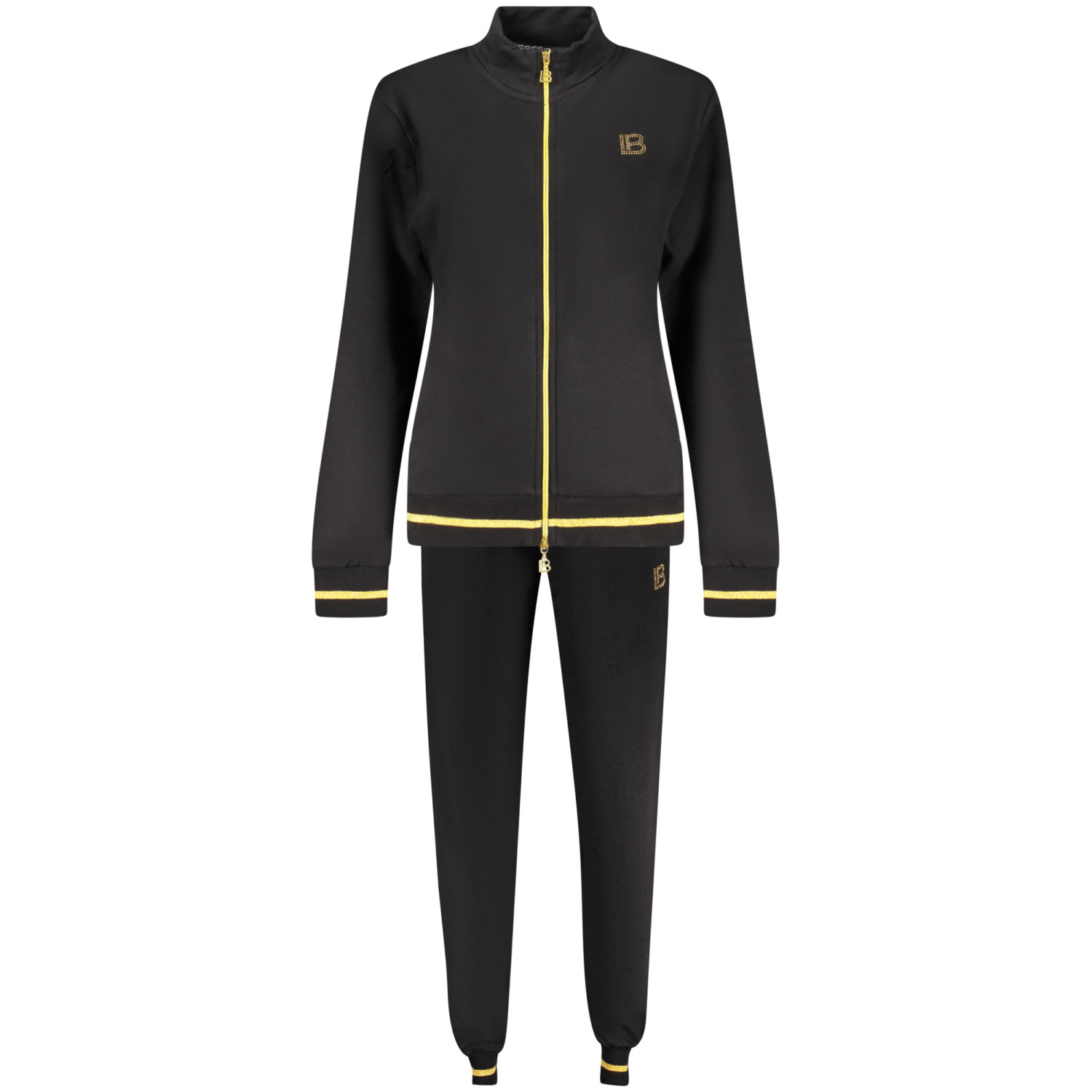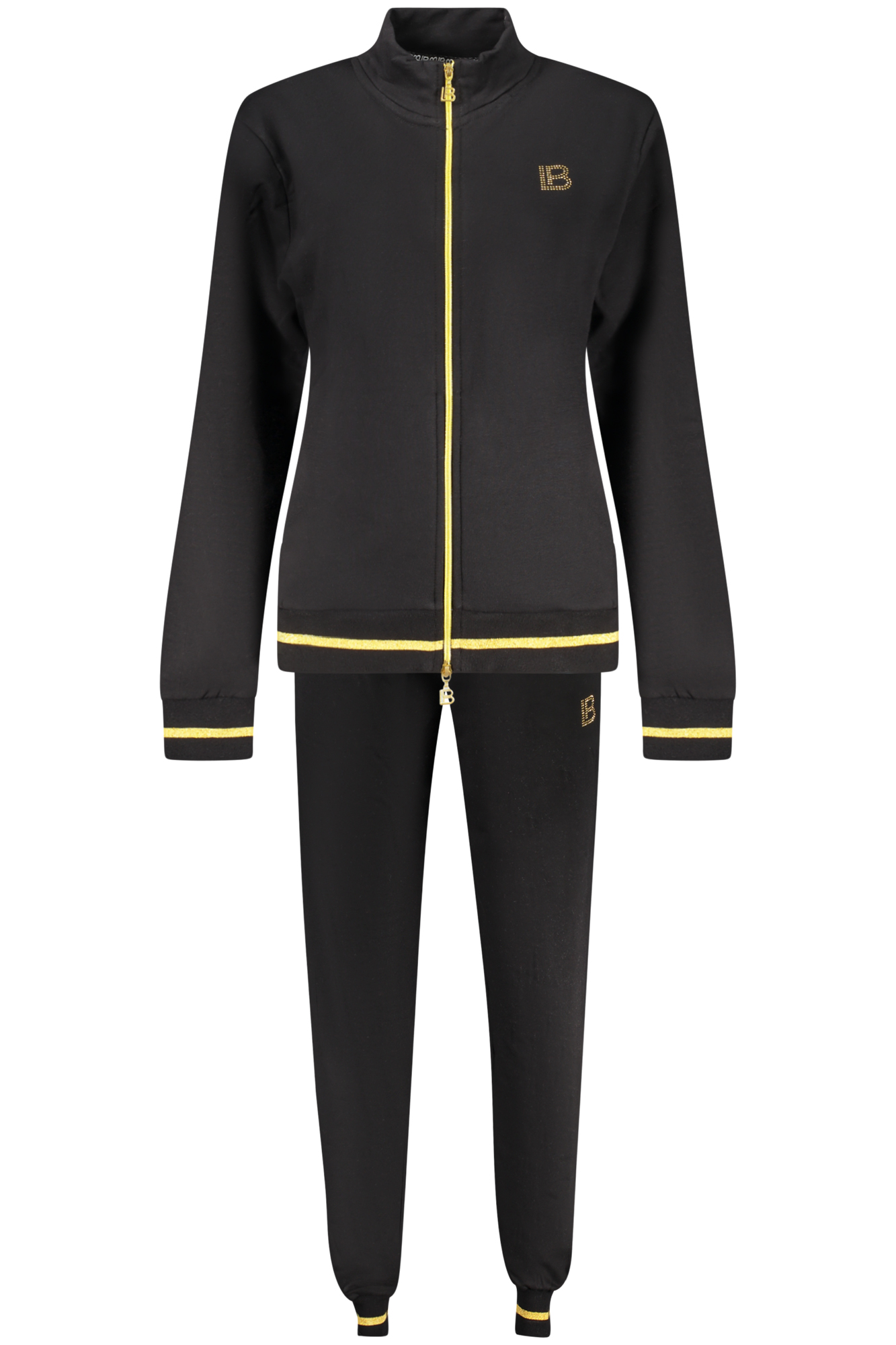 TUTA SPORTIVA FELPATA, FELPA MANICHE LUNGHE, 2 TASCHE, FULL ZIP, PANTALONE ELASTICO IN VITA CON LACCI, 2 TASCHE, DETTAGLI A CONTRASTO, APPLICAZIONE STRASS, LOGO