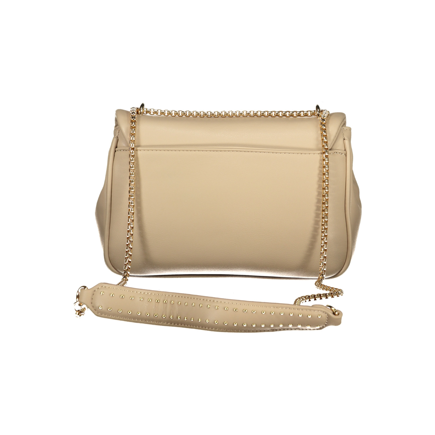 BORSA A TRACOLLA IN CATENA, 1 TASCA ESTERNA, 2 SCOMPARTI, 1 TASCA CENTRALE, 1 TASCA INTERNA, SPAZI INTERNI PORTATELEFONO, CHIUSURA CON AUTOMATICO, DETTAGLI A CONTRASTO, LOGO
