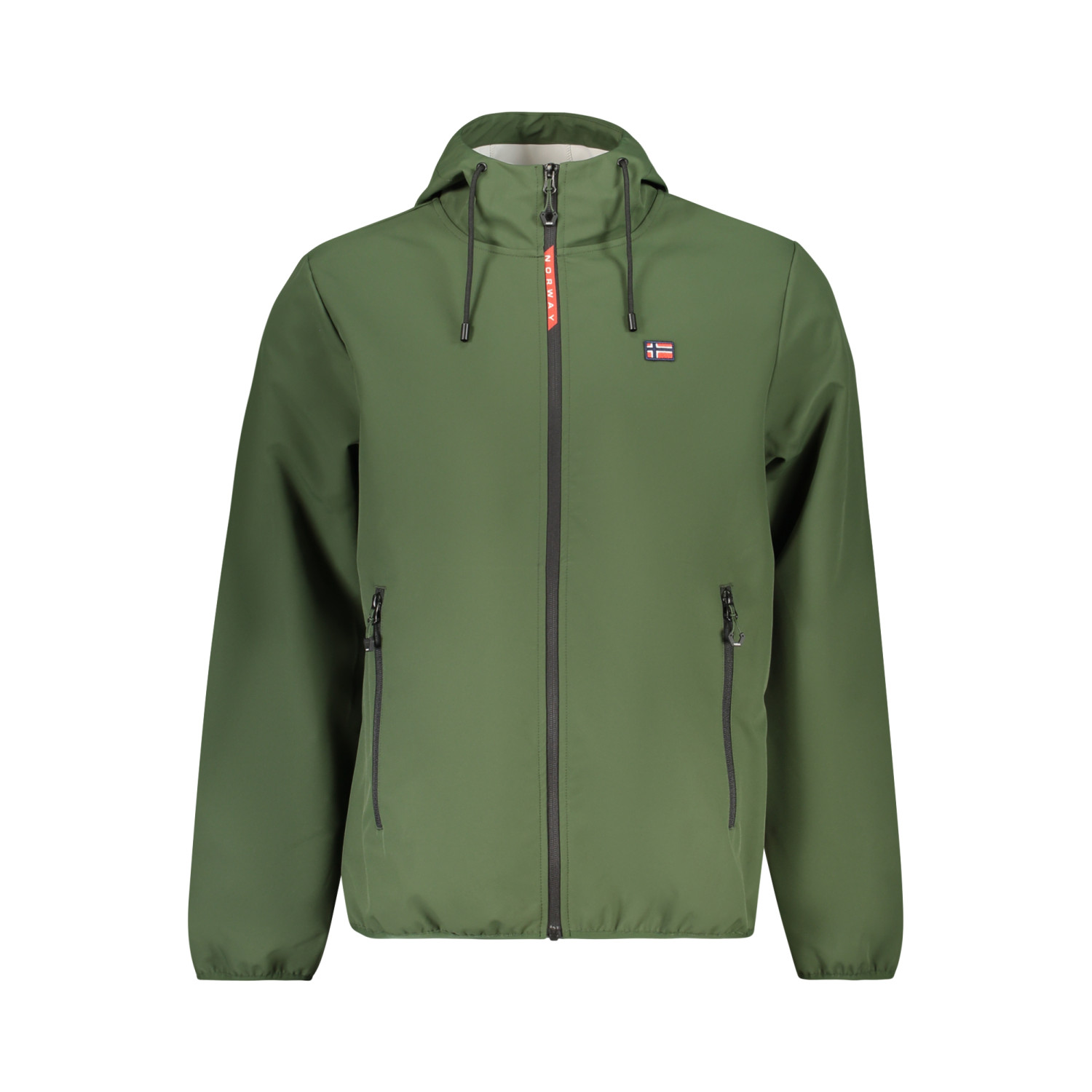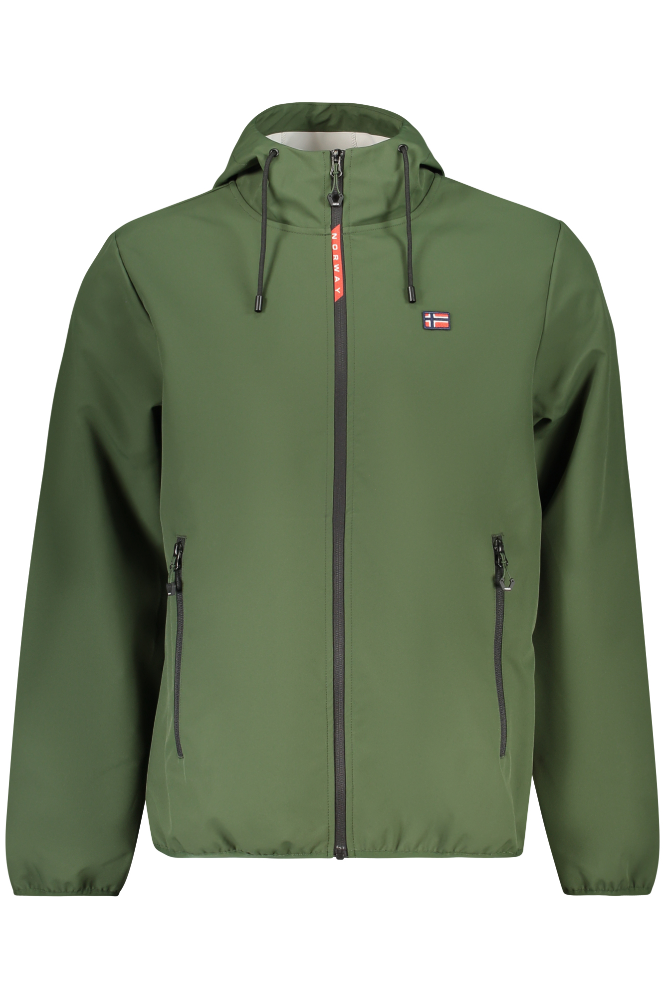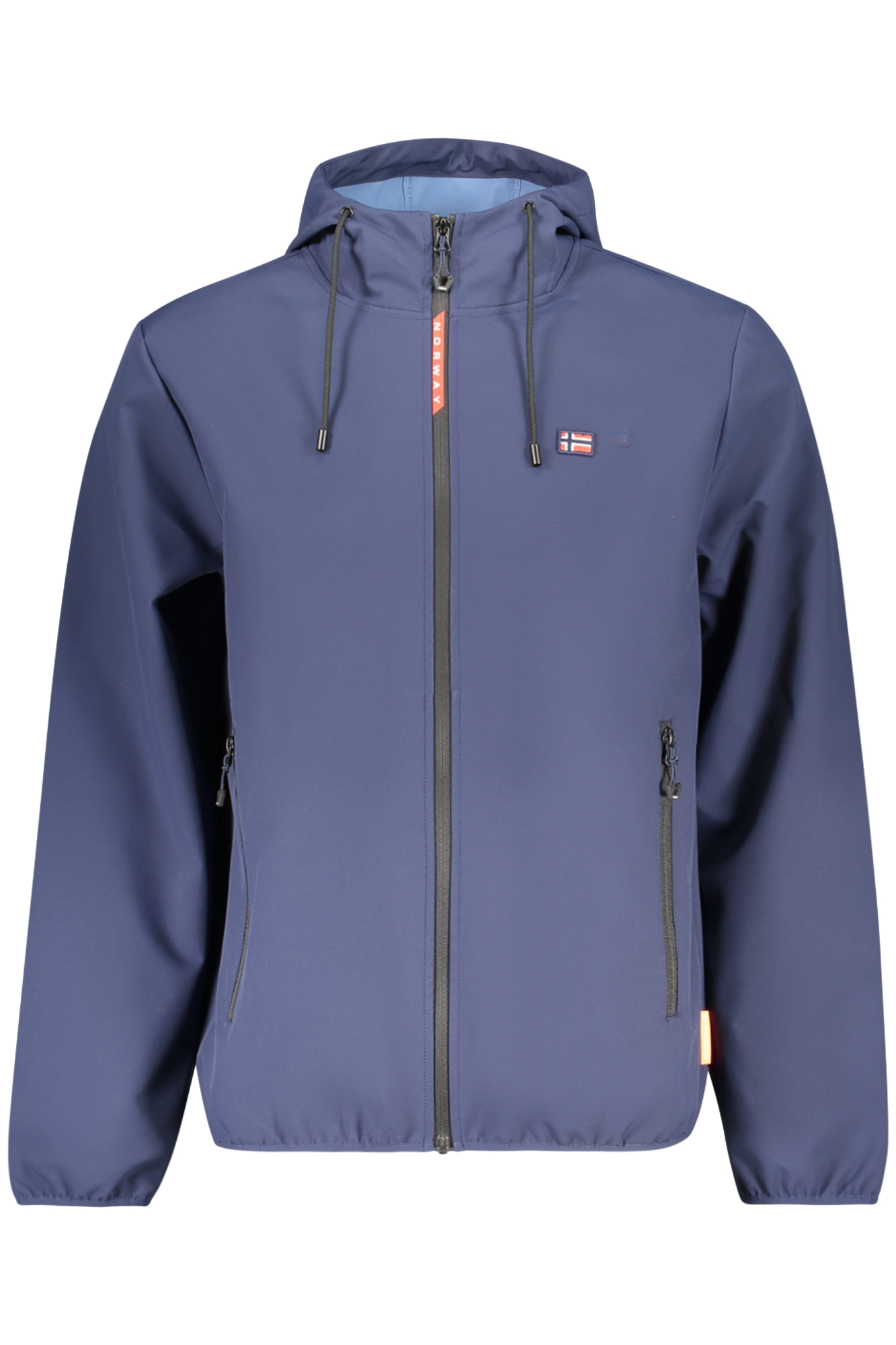 GIUBBOTTO SOFT SHELL MANICHE LUNGHE CON CAPPUCCIO, 2 TASCHE ESTERNE, 2 TASCHE INTERNE, DETTAGLI A CONTRASTO, ZIP, APPLICAZIONE, LOGO