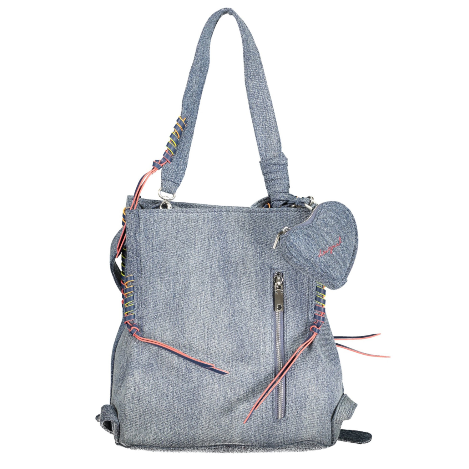 ZAINO TORIO DENIM SUMY MINI SOFT, 1 MANICO A SPALLA REMOVIBILE, SPALLINE REGOLABILI, 1 TASCA ESTERNA, 2 SCOMPARTI, 1 TASCA CENTRALE, 1 TASCA INTERNA, DETTAGLI A CONTRASTO, PORTAMONETE A CUORE REMOVIBILE, CHIUSURA CON ZIP E AUTOMATICI, LOGO