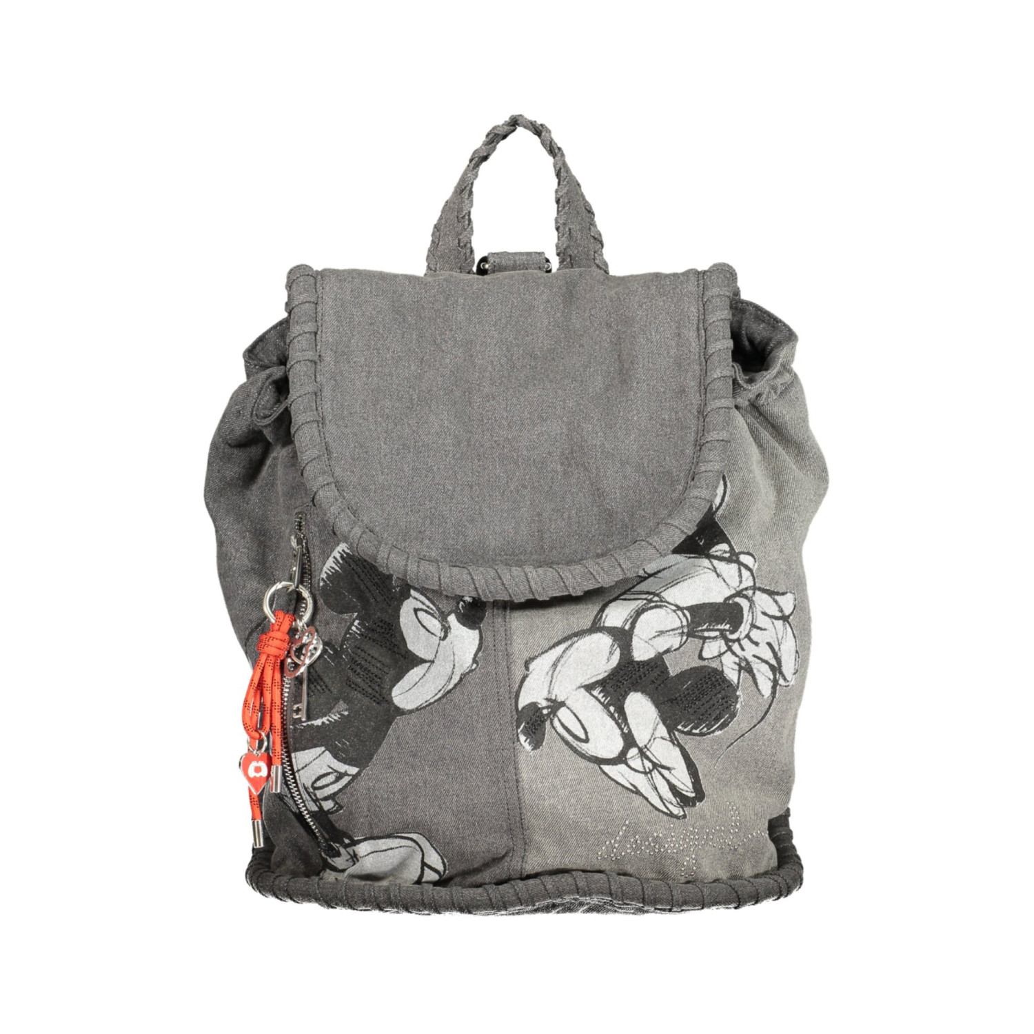 ZAINO MICKEY KISS NOIRA, 1 MANICO, SPALLINE REGOLABILI, 2 TASCHE ESTERNE, 1 TASCA INTERNA, PORTACHIAVI REMOVIBILE, DETTAGLI A CONTRASTO, CHIUSURA CON ZIP, COULISSE E AUTOMATICO, STAMPA, APPLICAZIONI , LOGO