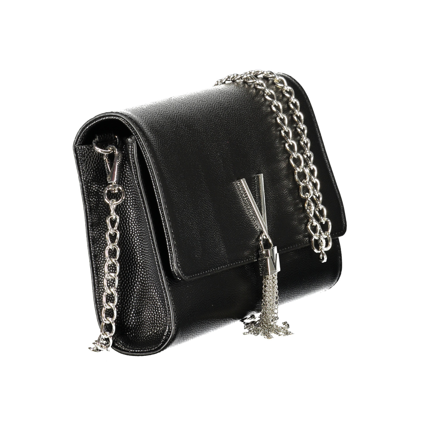 BORSA A MANO, TRACOLLA REMOVIBILE IN CATENA, 2 TASCHE INTERNE, DETTAGLI A CONTRASTO, CHIUSURA CON AUTOMATICO, LOGO